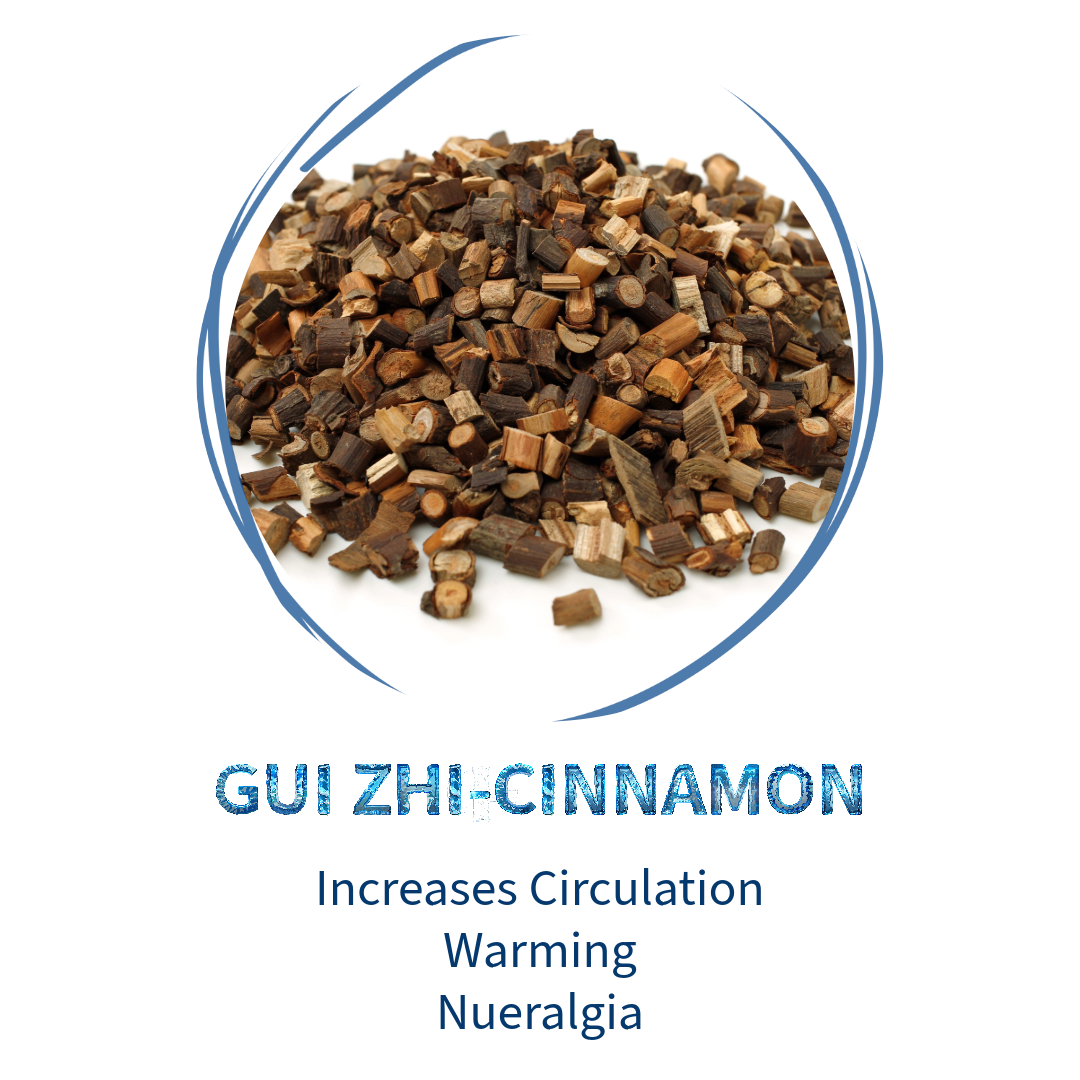 Cinnamon (Rou Gui): Warms the channels, disperses cold, and improves circulation—especially helpful for cold, stiff joints.